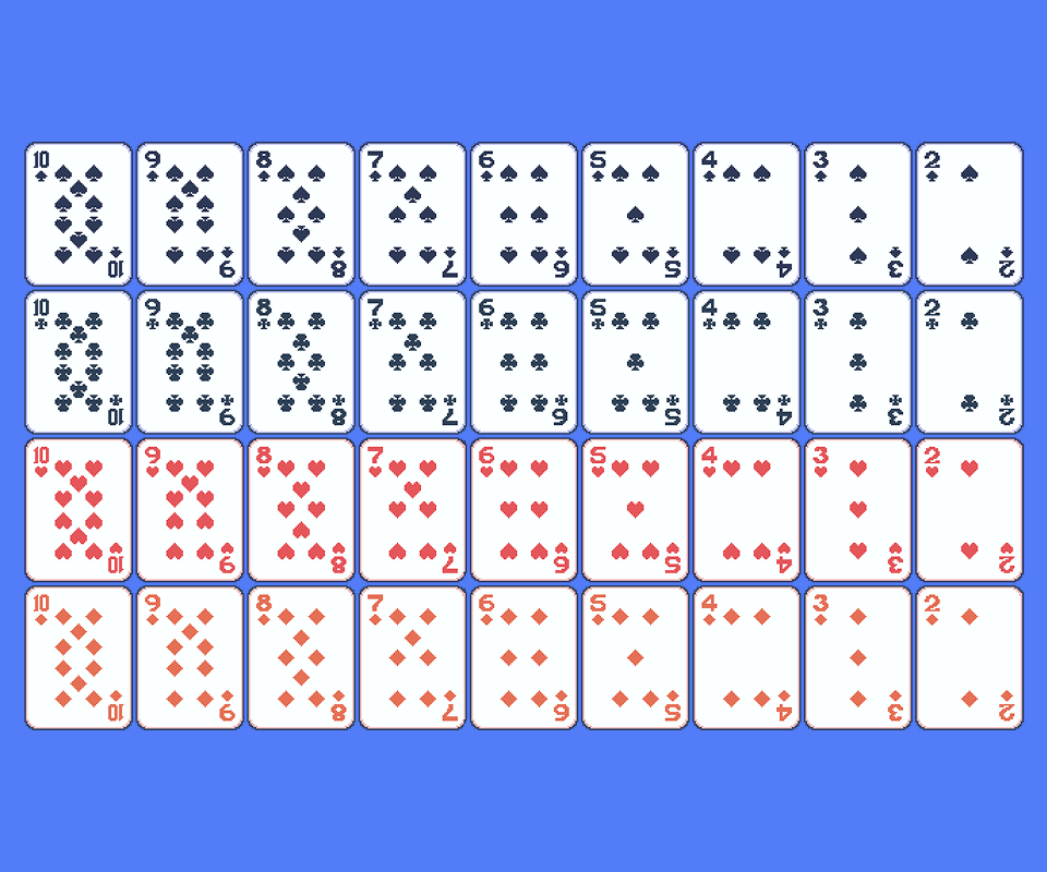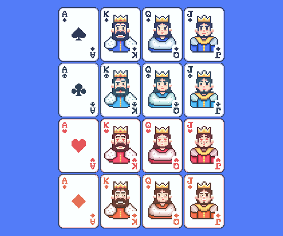 A clean, minimal 2D pixel-art card deck designed for digital card games.